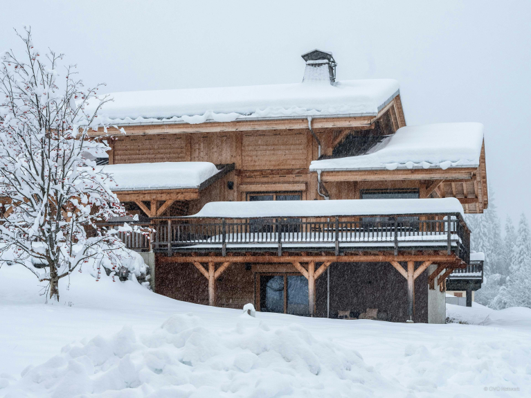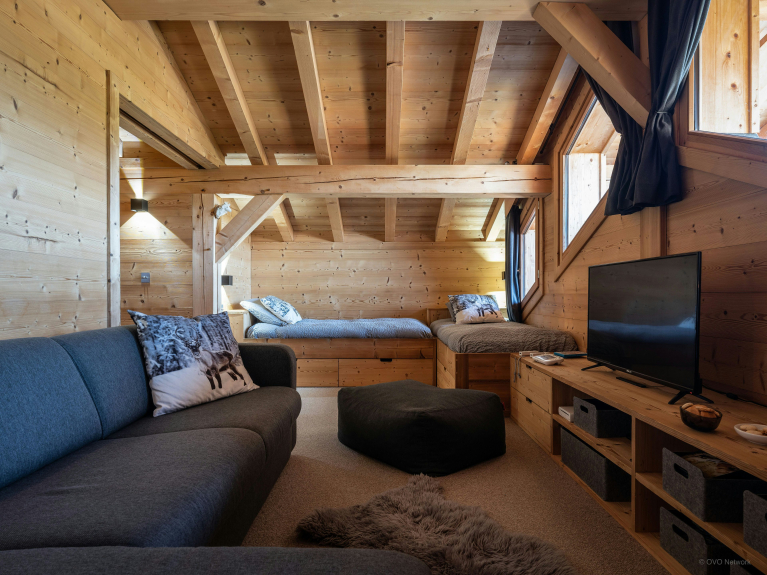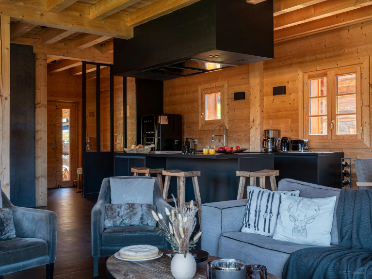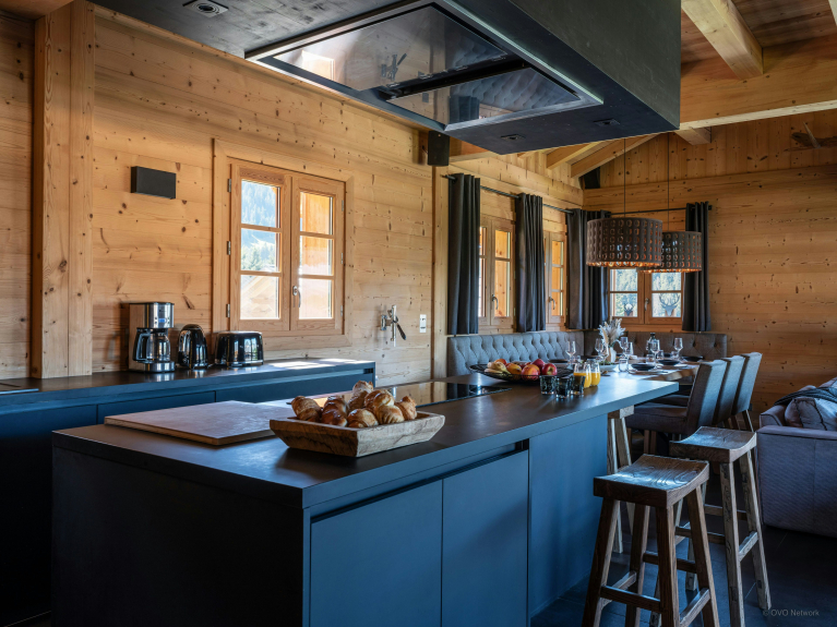 Chalet K is ontworpen voor maximaal tien personen op drie verdiepingen en heeft vier slaapkamers en evenveel badkamers.
