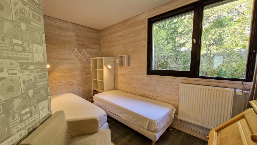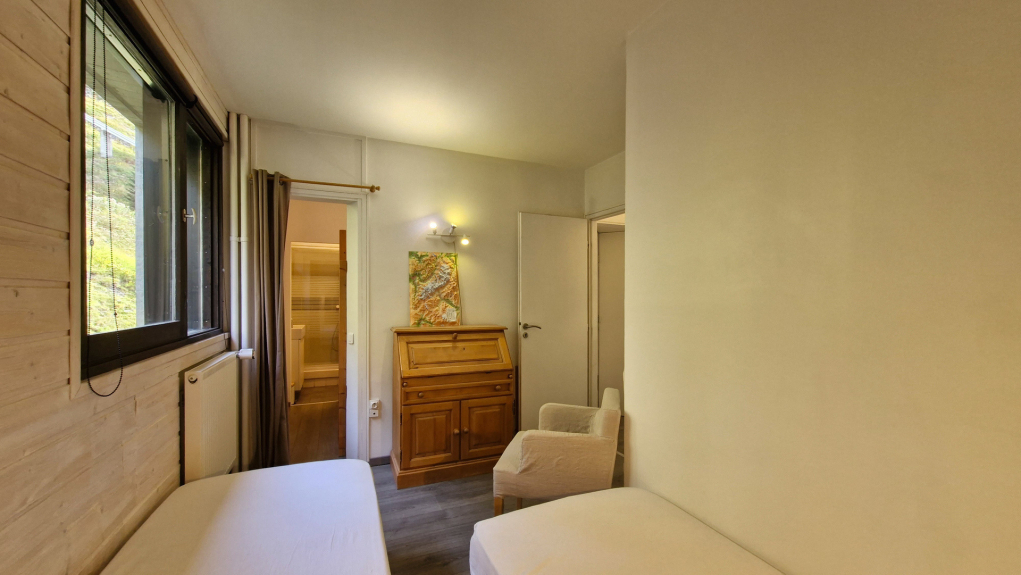 - Slaapkamer 2: 2 eenpersoonsbedden en klein bureau