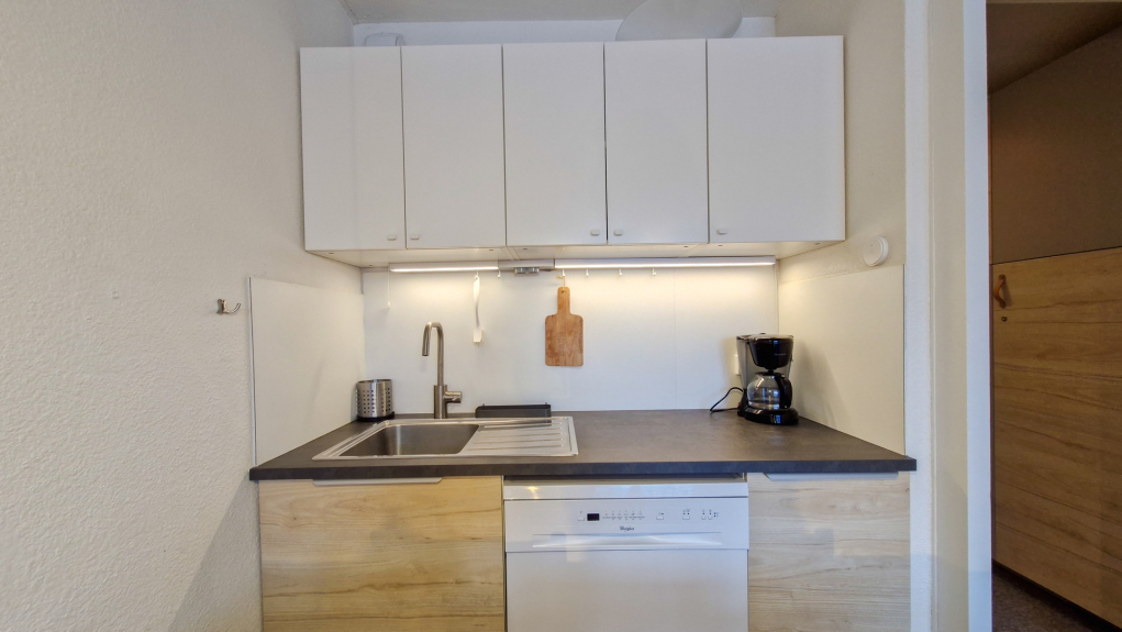 - Keukenhoek met koelkast, 2 keramische kookplaten, multifunctionele oven, afzuigkap, vaatwasser