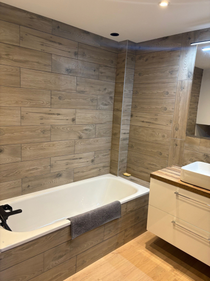 -Begane grond: 3 slaapkamers (90x200 bed, 90x200 bed en 140x200 bed), badkamer (douche en bad), wasmachine en droger, aparte WC.