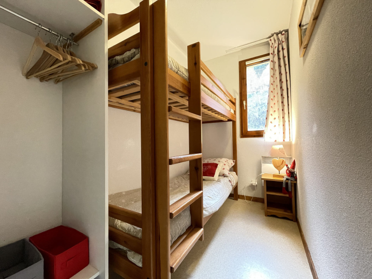 - 1 stapelbed in slaapkamer, deur en raam.