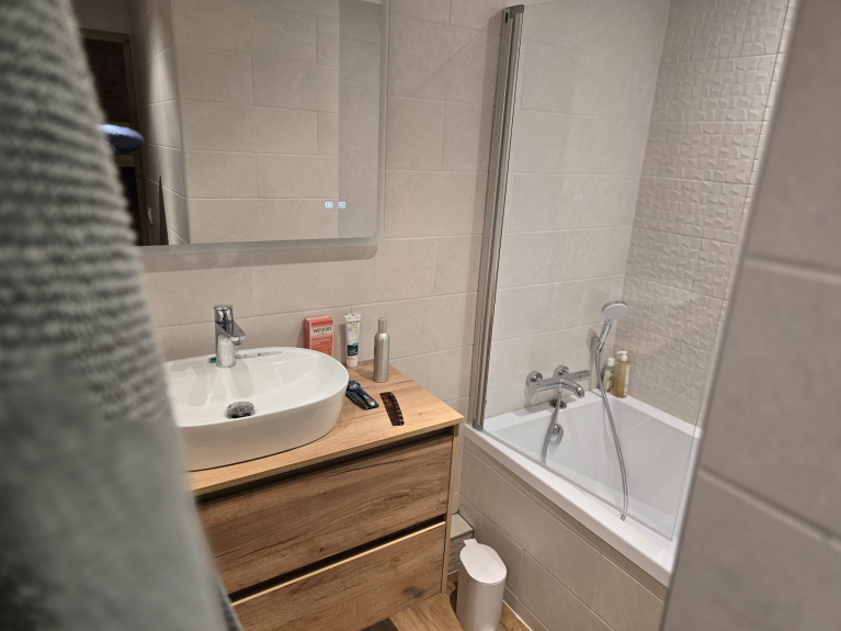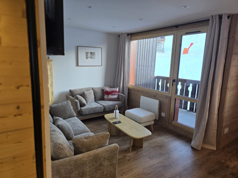 Gezellig appartement in bergstijl, volledig gerenoveerd, in het centrum van Les Coches, met ononderbroken uitzicht op de bergen en het bos vanuit de eetkamer en woonkamer. Alle winkels liggen op minder dan 2 minuten lopen, en de skiliften tot 1800m liggen tegenover het appartement.